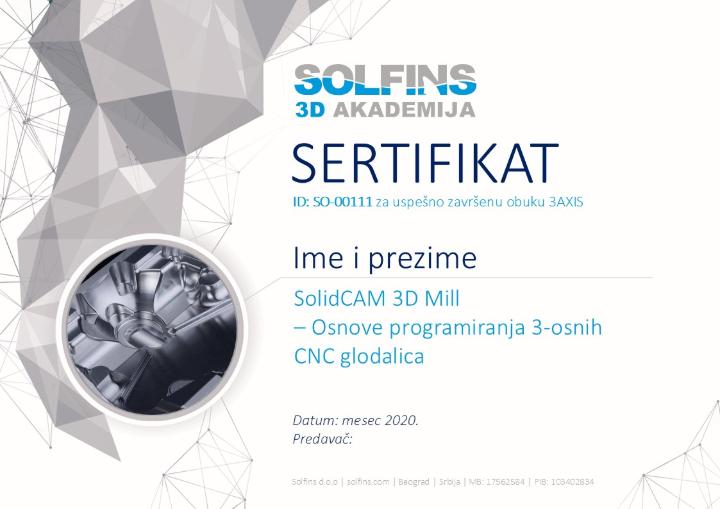 Tražite ponudu za SolidCAM 3AXIS obuku osnova programiranja glodalica za sebe i svoju kompaniju: