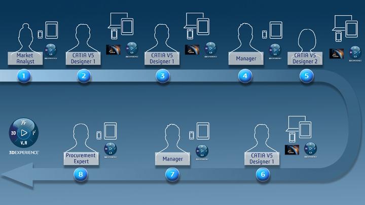 Priča počinje sa kolegom koji istražuje tržište i traži prilike i potencijale za nove kompetitivne prednosti vašeg proizvoda (Market Analyst). On za izmene postojećih projektnih zahteva koristi Microsoft Word, i taj fajl može sačuvati direktno na 3DEXPERIENCE platformi gde ga mogu videti i svi autorizovani korisnici platforme.