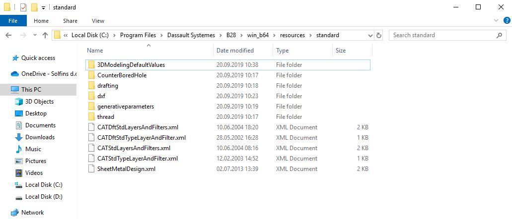 Takođe još jedan folder koji je potrebno iskopirati na Desktop računara je folder Standard, jer u tom folderu se nalaze dokumenti koje je korisnik naknadno ubacivao poput različitih standarda za navoje, itd. Putanja do tog foldera je Local Disk (C:)->Program Files->Dassault Systemes->B28->Win_b64->Resources->Standard.