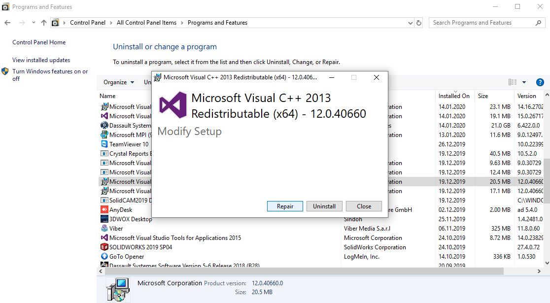 U novom prozoru potrebno je levim tasterom kliknuti na Repair. Nakon što smo uradili uninstall-aciju i repair, ostaje da se uradi restart računara.