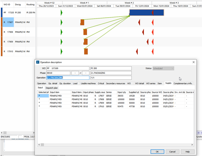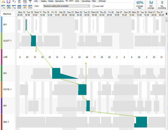 • Various types of link between operations and work orders (min or max lead time, overlap, maximum waiting time, strict synchronization…).