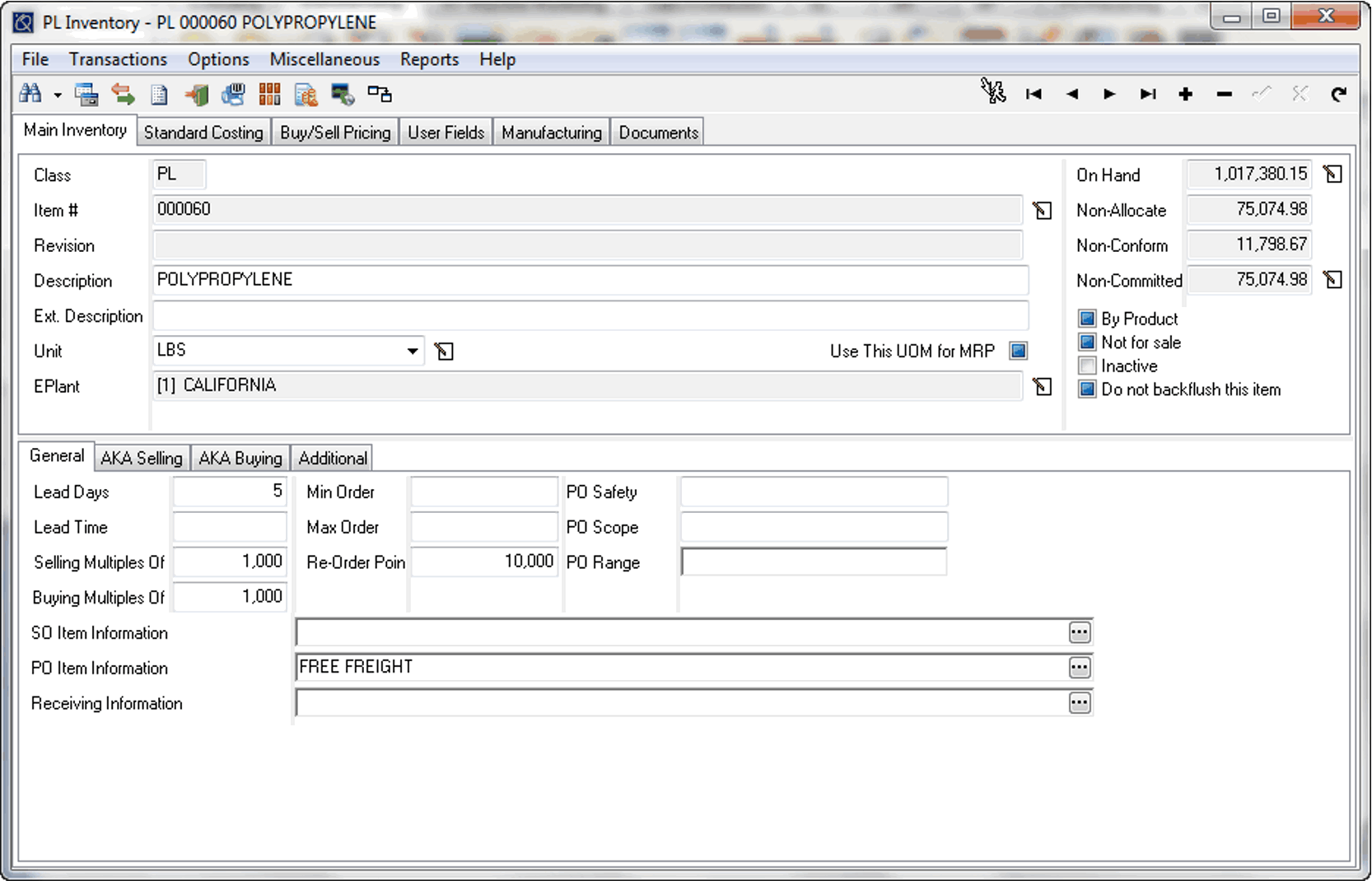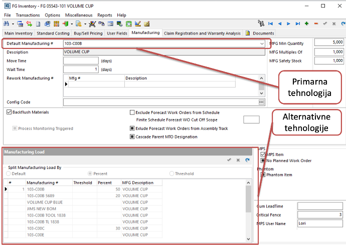 Item master je i mesto gde se uključuju specifične funkcionalnosti: Serialized Inventory Control, lot tracking, shelf life (rok trajanja i automatsko prebacivanje u non‑conforming kada istekne), eKanban/min‑max parametri, blend/formula logika za artikle koji nastaju mešanjem više komponenti. Za industrije sa visokim zahtevima za sledljivost (automotiv, medicinski, prehrambeni, hemijski) upravo ova kombinacija serijskog i lot praćenja, roka trajanja i kontrolisanih lokacija čini razliku između „klasičnog“ ERP inventara i sistema koji realno podržava audit i compliance.