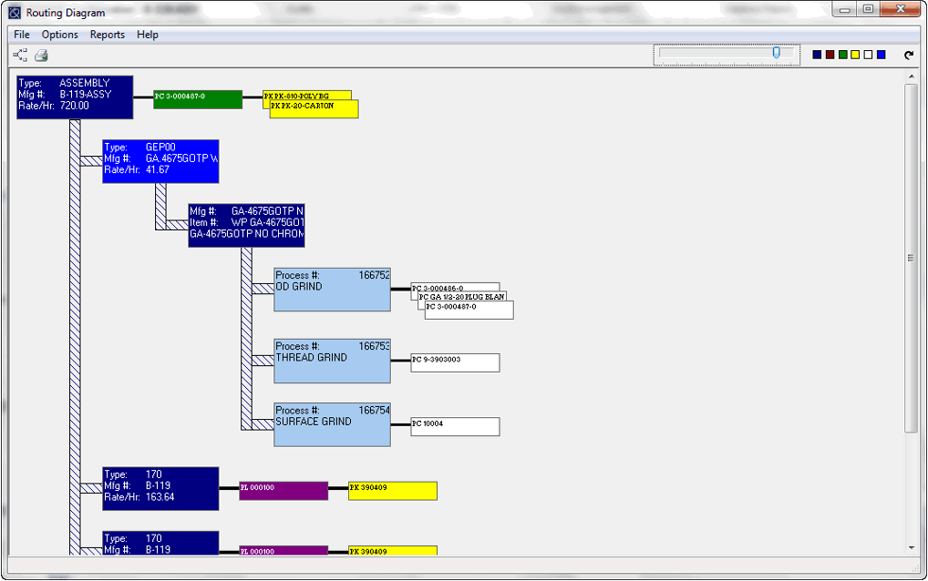 Cost elementi u DelmiaWorks-u omogućavaju da se trošak artikla razbije na logične komponente koje se kasnije mogu posebno analizirati: materijal, direktni rad, indirektni rad, mašina, generalni režijski troškovi, outsource troškovi i specifične dodatne stavke (npr. pakovanje, transport, licencni fee i slično). U okviru konfiguracije se kreiraju cost elementi i za svaki se vezuje odgovarajući GL račun (konto), čime se obezbeđuje da standardni, stvarni i varijansni troškovi budu korektno razdvojeni i u finansijama, a ne samo na nivou proizvodnje. Zatim se materijalni cost elementi dodaju na artikle i BOM komponente, dok se radni, mašinski, overhead i outsource cost elementi vezuju za Manufacturing Types, Cells, radne centre i eventualno pojedinačne artikle, kako bi standardni trošak proizvodnje artikla nastao kombinacijom potrošnje materijala i opterećenja resursa.