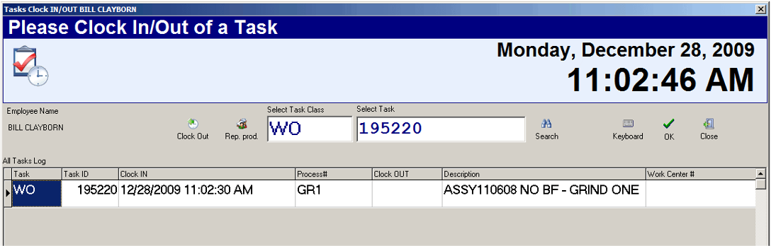 ShopData je namenska pogonska ili „shop floor“ aplikacija: veliki tasteri, ekran fokusiran na jedan radni centar, logika prilagođena ljudima u proizvodnji (Time Clock, Task Clock, Floor Disposition, Rejects, Downtime, RT Scan to Inventory, Pallet Builder, Serial Tracking, Report Production by Work Order…). Operater se prvo prijavljuje na posao (Time Clock), zatim na konkretan zadatak ili radni nalog (Task Clock), a njegovi sati se automatski vezuju za taj nalog i kasnije ulaze u obračun stvarnog rada i efikasnosti. Kada završi seriju ili deo serije, kroz iste ekrane prijavljuje dobre komade, škart, zastoje i završene palete, tako da se ceo tok od rada čoveka, preko rada mašine, do gotovog pakovanja vidi na jednom mestu.