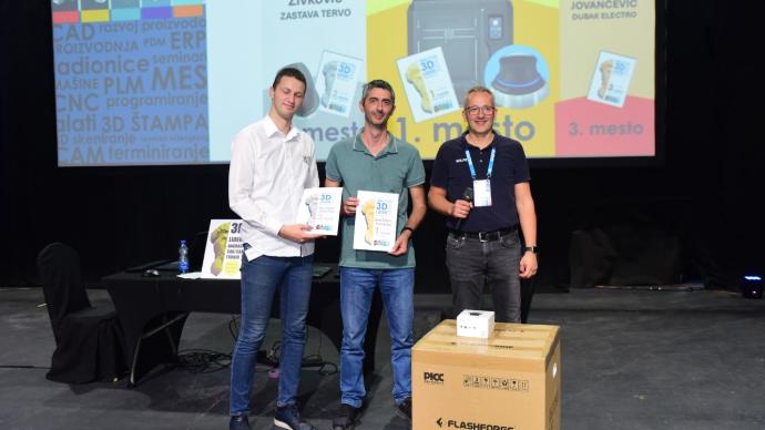 Slika: Nenad Stanković iz Armoring Zone kao pobednik takmičenja Solfins 3D Lider na 5. Sajmu proizvodnih tehnologija 2024 u Beogradu