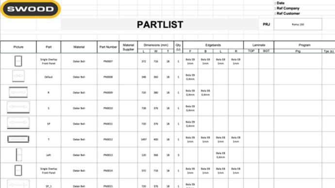 SWOOD automatski prepoznaje i umeće sve potrebne komponente iz prilagođenih biblioteka, uključujući šrafove, šine i spojeve, dok optimizuje raspored delova za CNC obradu kroz inteligentnu pripremu podataka i generisanje tehničke dokumentacije.