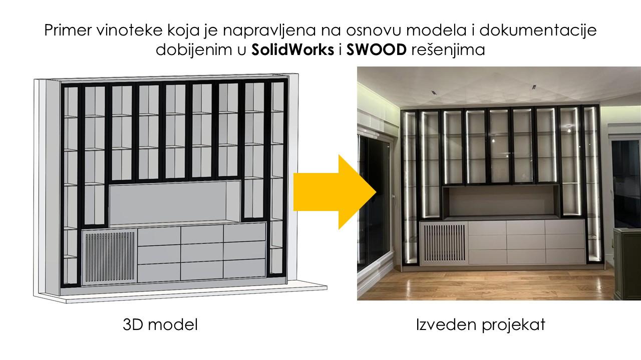 Primena SolidWorks softvera u kombinaciji sa SWOOD rešenjima, koja su specijalno razvijena za industriju nameštaja, omogućilo je parametarsku konstrukciju proizvoda sa preciznim modelovanjem elemenata kao što su spojni sistemi, okovi i specijalizovane SWOOD biblioteke.