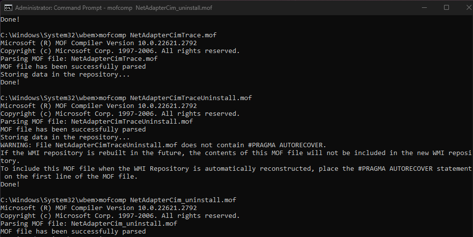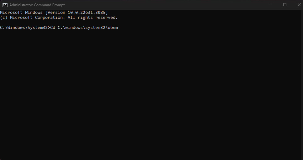 Prekopirati sledeći tekst iza C:\Windows\System32\wbem>