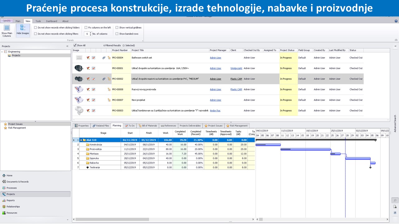 Praćenje procesa konstrukcije, izrade tehnologije, nabavke i proizvodnje
