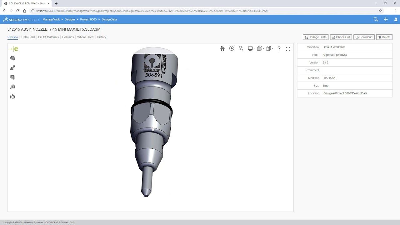 Web2 PDM platforma Vam omogućava da pregledate fajlove preko web pregledača na bilo kom uređaju, a po potebi ih odjavite, preuzmete na lokalni računar i izmenite, a zatim ih ponovo dodate i prijavite na PDM vault.