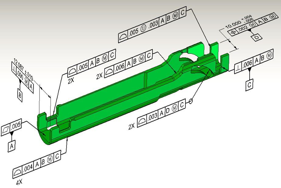 Ovo je MBD ili 3D PMI ili u prevodu definisanje svih informacija potrebnih za proizvodnju na 3D modelu proizvoda. MBD je skraćenica od Model Based Definition. 3D PMI je skraćenica od Product Manufacturing Information. Ovaj model je razumljiv nakon jednog minuta gledanja. Sve tolerancije koje najviše utiču na cenu su istaknute i vidljive, ostale dimenzije se nalaze na modelu i nije ih potrebno prikazivati. CAM softveri današnjice prepoznaju tolerancije na modelu i definišu adekvatnu tehnologiju automatski. Model je rađen u razmeri pa se za nedefinisane kote primenjuju tolerancije slobodnih mera. Softveri za upravljanje kordinatnim mernim mašinama i 3D skenerima u službi kvaliteta, razumeju tolerancije na 3D modelu. Vaša sekretarica u firmi razume ovakav prikaz proizvoda!