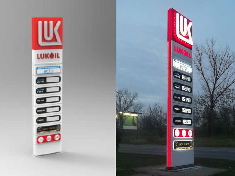Projektovanje, proizvodnja i montaža svetlećih reklama, totema, bilborda, reklamnih pultova, oblasnih polica, rafova i putokaza