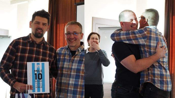 - pokloni kolegama koji su sa nama već punu deceniju i pola decenije sa pregledom istorijata zapošljavanja - Da li ste znali da je prosečan radni vek u Solfinsu preko pet godina? Nismo ni mi do ove Skupštine i to je još jedan razlog zašto nam je ovaj događaj vredan.