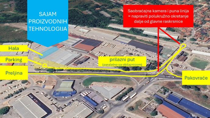 Parkingu ispred hale pristupa se od raskrsnice bulevara Oslobođenja i južne obilaznice (put 23 / E-761 / E-763)